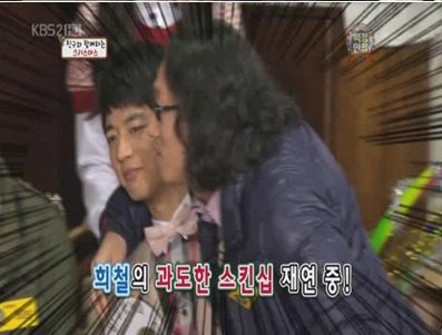 김경진은 "술이 취하면 어느정도의 스킨쉽은 이해할 수 있지만 김희철은 너무 심하다"라고 폭로했다.