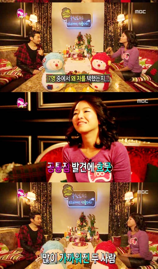 25일 방송된 MBC '무한도전-크리스마스 싱글파티'에서 노홍철과 만남을 갖기 원하는 여성 중 7명을 무작위로 선정, 안대를 쓴 노홍철이 마음에 드는 여성을 고른 것.