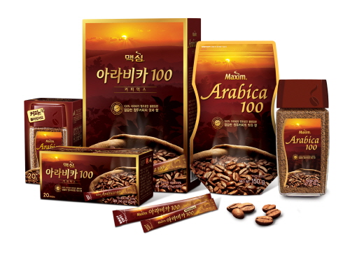 '맥심 아라비카 100'은 2007년 3월 출시된 이후 1년 전 원두커피의 깔끔한 맛과 풍부한 향을 보다 잘 표현할 수 있도록 품질과 패키지 디자인에 대한 리뉴얼을 실시한 바 있다. 리뉴얼된 ‘맥심 아라비카 100’은 한국인의 취향을 반영한 맛과 향으로 소비자들의 관심을 받고 있다.