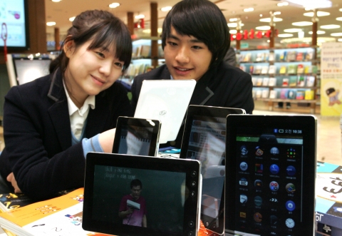 아이패드나 갤럭시탭 등 현재 출시된 태블릿PC가 70만~80만원대의 고가인 반면, 애듀탭은 동영상 플레이어(PMP) 제조업체인 아이스테이션과의 제휴를 통해 40만원대의 저렴한 가격에 출시된다.