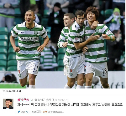 이에 차범근은 27일 자신의 싸이월드 C로그에 “짜식! 뭐 그깟 골 하나 넣었다고 자는데 새벽에 전화해서 깨우고 난리야. 흐흐흐흐”라며 흐뭇한 웃음을 전했다.