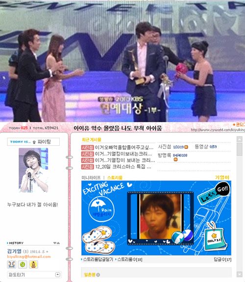 이에 아랑곳하지 않고 아이유는 현재 세 번째 미니음반 ‘리얼’의 타이틀 곡 ‘좋은 날’로 최고 인기를 구가하고 있다. (사진=KBS 연예대상 방송캡쳐, 김기열 미니홈피)