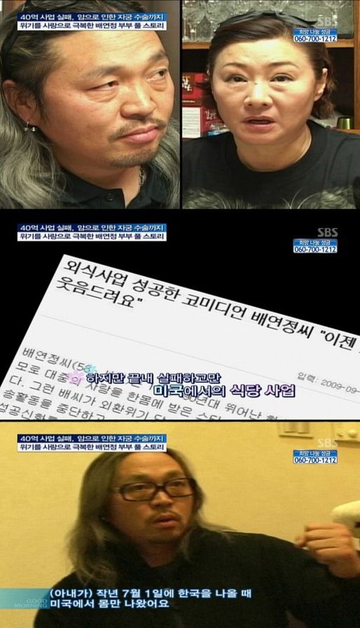 과거 배연정이 미국에서의 사업실패와 두 번에 거친 암 투병으로 힘들어 할 때도 남편은 그녀 곁을 끝까지 지키왔다. 이날 방송에서 배연정은 이에 대한 고마움과 암 투병 당시의 고통에 대해 생생하게 털어놨다. (사진=SBS 좋은 아침 방송 캡쳐)