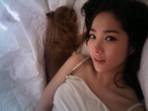 박민영은 지난 21일 자신의 트위터에 “잠깐 침대에 누워서 왓쩝이와 놀아주는 중이었는데 어느새 코~ 자네 우쭈쭈”라는 글과 함께 사진 한 장을 공개했다.