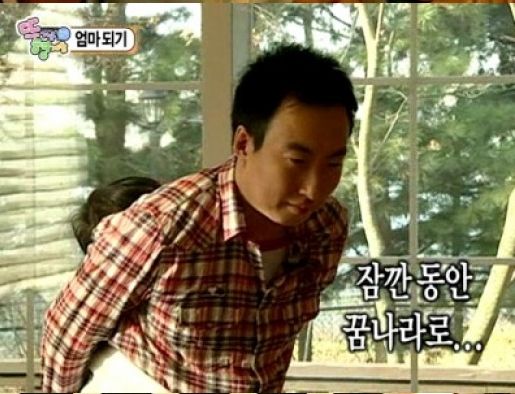 박명수는 다른 멤버에게 기저귀 채우는 방법을 가르쳐 주는 것은 물론 칭얼대는 아이를 달래는 법 등을 상세하게 설명해 시청자 들을 놀라게 했다.