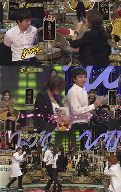 이에 강호동은 김아중과 이승기의 커플댄스까지 이끌어 내며 스튜디오를 흥분의 도가니로 만든 것.