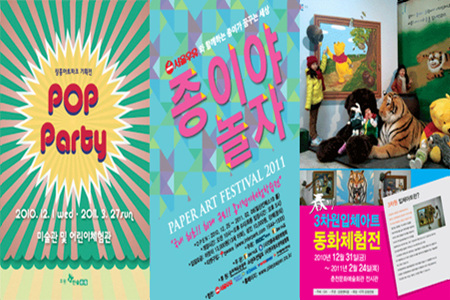 한 해를 마무리 짓기 위한 움직임이 바쁘다. 책상 위에는 너나 할 것 없이 2011년도 캘린더가 떡하니 차지하고 있다. 2011년을 꼼꼼히 계획하기 위한 다이어리도 하나 장만했다. 2011년도를 맞을 준비는 이쯤 하면 된 것 같은데 2010년도와 이별도 중요하다. 다사다난했던 한 해를 마무리 짓는 요즘, 마음을 차분히 가라앉혀주는 전시를 관람하는 건 어떨까. 연말 아이들과 함께하는 시간이 부족한 부모는 물론, 연인과의 특별한 데이트 장소로도 손색이 없는 세 편의 전시를 소개한다. 어렵지 않아 더 즐거운 ‘POP PARTY’, ‘종이야 놀자’, ‘3차원입체아트 동화체험전’이다.