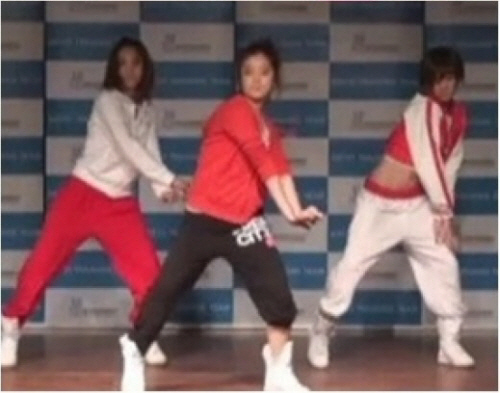 영상 속 두 사람은 트레이닝복을 입고 무대에서 볼 수 없었던 파워풀한 댄스를 선보였다. 특히 원더걸스의 혜림이 함께 등장해 눈길을 끈다.