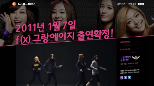 NHN 한게임은 31일 액션롤플레잉게임 '그랑에이지'의 공식모델인 '에프엑스’가 촬영한 티저영상을 공개했다. 이번에 공개된 티저 영상에서는 엠버를 제외한 빅토리아 크리스탈 설리 루나 4명의 에프엑스 멤버들이 게임의 핵심 콘텐츠인 '체인아츠' 시스템을 묘사한 화려하고 경쾌한 댄스의 일부분과 각 멤버들의 인터뷰, 댄스 연습장면, 촬영장 스케치 등이다.
