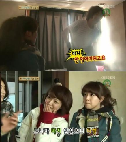 두 여자 사이에서 이홍기는 어찌할 바를 몰랐다. 알고보니 잠에서 막 깬 이홍기의 의상이 속옷 차림이었던 것. 허리에 이불을 감은 채 피해 도망갔다.