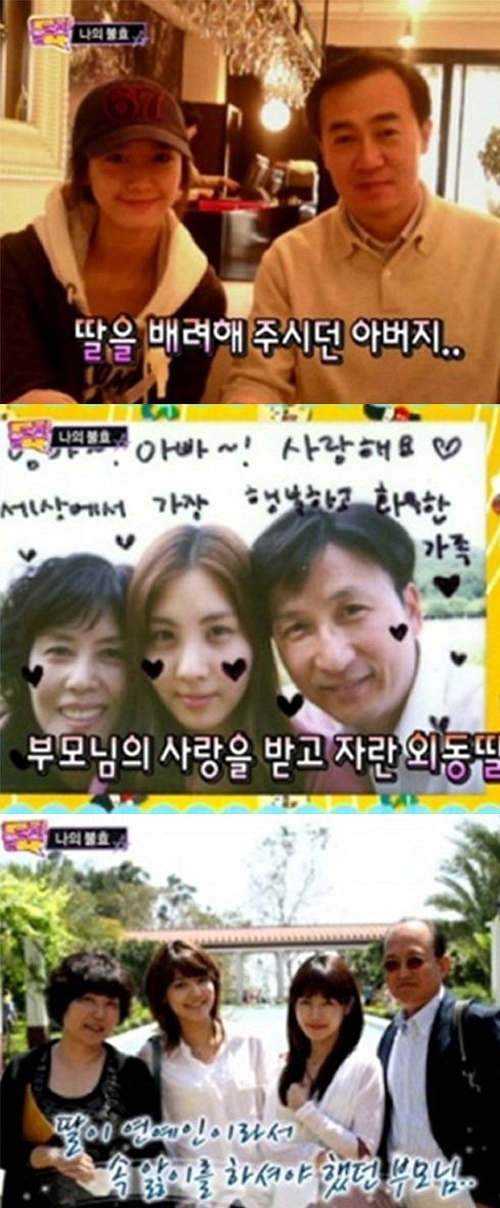 소녀시대 멤버들은 3일 방송된 MBC '유재석 김원희의 놀러와'에서 각자 가족사진을 공개하며 가족사에 대한 이야기를 나눴다.
