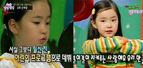 신세경이 어린시절 MBC '뽀뽀뽀'에 출연했던 사진이 공개되면서 '모태 청순미인'임이 증명된 것.