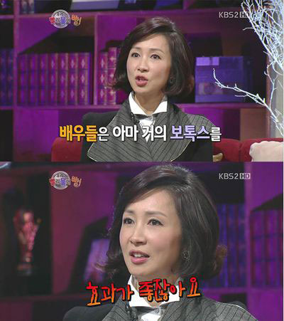전인화는 주기적으로 보톡스를 맞는다는 소문에 대해서는 “주기적은 아니고 몇 년 전까지는 맞았다”면서도 “처음엔 효과가 좋아 맞았는데 주기적으로 맞으면 안될 것 같다는 생각을 했다”고 솔직히 털어놨다.