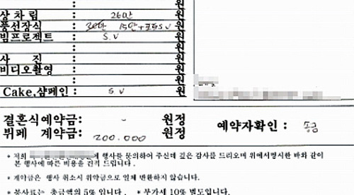 최근 불가피한 사정이 생겨 계약을 취소한 조 씨는 행사예정일이 3개월이나 남아 있어 당연히 계약금이 반환될 거라 믿었다. 그러나 뜻밖에도 업체 측 담당자는 “이용약관에 '계약 해지 시 계약금 전액 환불 불가'라는 조항이 있다”며 계약금 환급을 단호하게 거절했다.