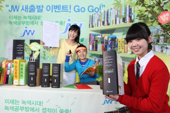 오는 10일까지 JW중외제약 홈페이지(www.jwellday.co.kr)에서 녹색 공부방에 대한 퀴즈 정답을 맞추면 100명을 추첨해 하이림에듀를 증정한다. 이벤트 참석자 전원에게는 하이림에듀 1만원 할인 쿠폰을 지급한다.