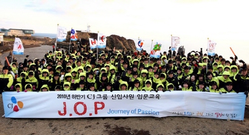 CJ그룹에 따르면 지난해 하반기에 선발한 신입사원을 대상으로 지난 8일 오전 7시 제주 관광명소 섭지코지를 출발, 오후 9시 제주 신영영화박물관에 도착하는 14시간의 행군 ‘J.O.P(Journey of Passion)’를 실시했다.