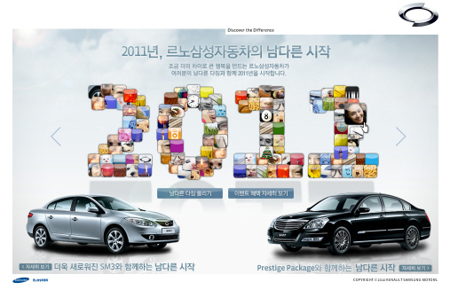 르노삼성자동차는 사양이 보강된 SM3와 SM7 프레스티지 패키지 출시를 기념해 온라인에 새해 다짐을 올리는 '2011, 르노삼성자동차의 남다른 시작' 이벤트를 다음 달 6일까지 진행한다고 11일 밝혔다.