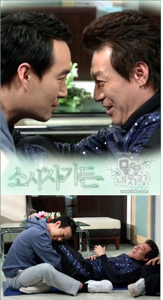 사진 속 김갑수는 '현빈 트레이닝복'으로 유명한 반짝이 트레이닝복을 입고 있다. 또한 김집사(정호빈 분)과 함께 '시크릿 가든'의 현빈과 하지원이 선보여 화제를 모은 윗몸 일으키기 장면을 재연하고 있다.