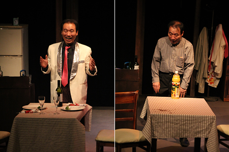 명배우 황금봉은 일인극 형식을 취한다. 혼자 이야기하고 혼자 생각한다. 다른 인물이 등장하는 것은 현실이 아닌 황금봉의 생각 속에서다. 늙어 손아귀에 힘이 빠진 그는 오렌지 쥬스 뚜껑조차 열지 못하지만 꿈에 대한 기상만은 청춘 못지않다. 뚜껑을 열지 못한 황금봉은 슬퍼하지 않는다. 그렇다고 자신이 나이 들었음을 인정하지도 않는다. 피곤해서 뚜껑을 열지 못하는 거라고 에둘러 위로한다. 아무렇지 않은 척해도 관객은 안다. 황금봉의 축 처진 어깨 끝자락에 늙고 외로워 서글픈 그의 마음이 뚝뚝 묻어나므로.