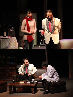 황금봉은 늘 자신의 곁을 맴돌며 그를 위로하고 채근하던 딸과의 화해를 시도한다. 황금봉의 딸은 그를 가장 잘 이해하고 사랑하는 인물이다. 어두컴컴한 조명만이 자리한 무대도 딸의 등장에는 밝은 빛이 잠깐 어린다. 딸과 마주하는 시간만큼은 황금봉의 표정도 밝다. 지금은 영화출연조차 하지 못하는 황금봉이지만 딸 앞에서 그는 늘 멋진 배우다. 딸은 그의 배우정신을 높이 사며 늘 그를 추어 올린다. 딸을 통해 그의 속내가 드러난다. 딸은 아버지의 정신을 일깨우는 동시에 아버지의 자아를 무대 위로 끌어 올린다. 그의 딸이 황금봉을 인정하는 존재였다면 황금봉의 의사친구는 그의 나약함을 들춰낸다. 한때 이름을 날리던 배우였지만 지금은 늙고 노쇠한 노인이 됐음을 아프게 각인시킨다. 황금봉과 달리 그는 현실에 발을 두고 있다. 그의 눈에는 그런 친구가 마땅찮다. 관객은 의사친구의 등장으로 황금봉이 지금 현실과 이상 그 어디에도 존재하지 않음을. ‘알게 된다. 꿈결을 헤매는 그에게는 현실도 이상도 없다. 혼돈만이 가득하다.