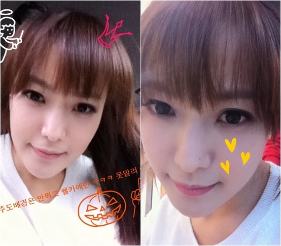 유난히 크고 검은 눈동자가 돋보이는 가운데, '써클렌즈'를 낀 게 아니냐는 의혹(?)을 받자 "버럭! 제가 써클렌즈를 왜 껴요! 앞머리 자른거 봐달란건데 ㅠㅠ 다들...흑흑;"이라 귀엽게 답했다.