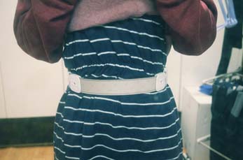 착용방법은 매우 간단해요. 자기 허리 사이즈에 맞게 벨트를 지압이 느껴질 정도로 조여서 착용하면 된답니다. 맨살에 그냥 착용하면 아플 수도 있으니 이렇게 저처럼 얇은 티셔츠나 런닝 같은 속옷 위에 착용하는 게 좋을 것 같아요. 얇은 티셔츠 위에 꾸꾸기를 착용해도 겉 옷 위로 표시 나지 않아서 외출 시에도 문제 없어요.