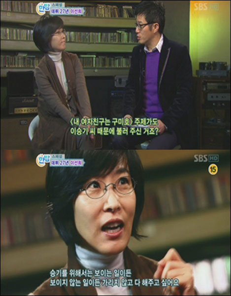 또 이선희는 이승기가 출연했던 SBS ‘내 여자친구는 구미호’의 OST을 부른 것에 대해서는 “승기를 위해서는 보이는 일이든 보이지 않는 일이든 가리지 않고 다 해주고 싶다”며 후배 가수에 대한 진심어린 애정을 표시했다.