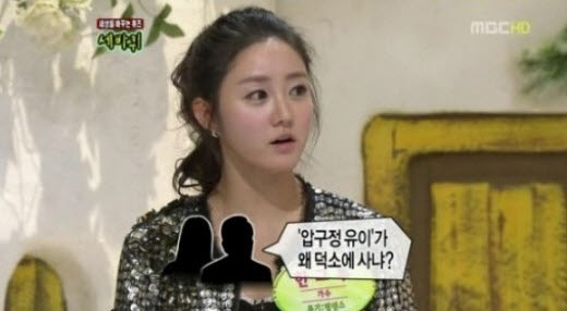 이어 "최근에 덕소역에서 전철을 기다리고 있는데 중학생들이 '압구정 유이 아냐?'라고 했지만 한 중학생이 '압구정 유이'가 왜 덕소에 있냐?'고 해 민망했다"고 말해 폭소를 자아냈다.