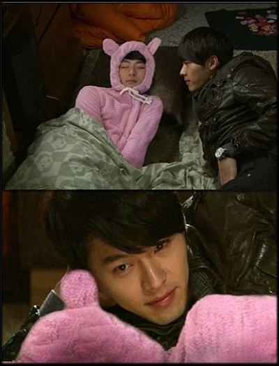 이 패러디는 '시크릿 가든'에서 하지원이 속한 액션스쿨 팀이 현빈의 리조트로 워크숍을 갔던 장면을 캡처한 화면. 액션스쿨 뒤풀이 중 한구석에서 자고 있는 하지원을 사랑스러운 눈빛으로 바라보는 현빈의 모습이 시청자들을 설레게 했던 장면이다.