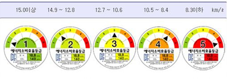 자동차의 경우 배기량 크기에 상관없이 15km/ℓ 이상의 연비를 갖추면 1등급을 부여한다.