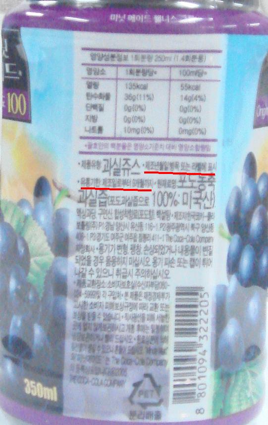 유통기한은 ‘제조일로부터 9개월까지’란 표시만 있을 뿐 정작 제조일자는 찾을 수 없었다. 제조회사에 전화를 했다. “포도는 제품 색깔상 찾기가 어렵다”는 말만 했다. 곰곰이 살펴보았지만 찾기 어려웠다.