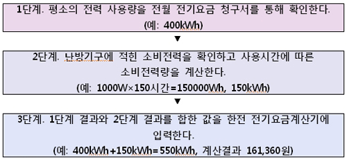 그렇다고 난방기구 사용을 무조건 막을 수는 없는 노릇이다. 소비자들은 평소 전력소비량을 확인하고, 추가 전력소비량과 누진제에 따라 전기요금이 어떻게 상승되는지 미리 예상할 수 있어야 한다.