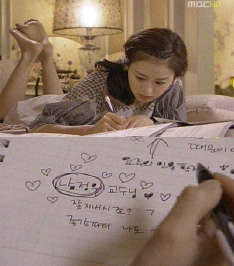 김태희는 메모장에 짝사랑하는 남정우(류수영 분) 교수의 이름 곁에 앙증맞은 하트를 여러 개 그려 넣어 귀여운 글씨체를 더욱 돋보이게 했다.