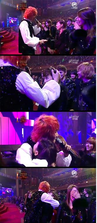 김장훈이 소녀시대 태연을 기습포옹해 남성팬들의 질투어린 시선을 받았다.