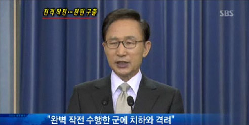 아덴만에서 펼쳐진 청해부대의 여명작전이 성공리에 끝나면서 이명박 대통령이 국민에게 직접 작전성공을 발표했다.