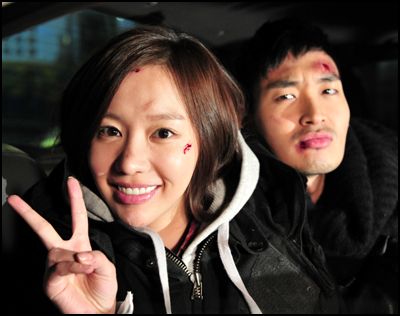 처절한 격투신의 두 사람은 얼굴 등에 상처를 입었고 이를 기념하기 위해 인증샸을 공개했다.
