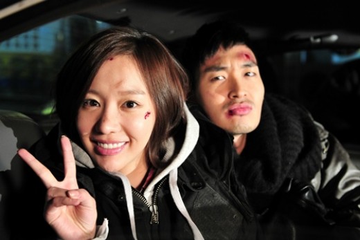 김아중은 브이자를 그린 채 밝게 웃고 있으며 정겨운은 입술을 내민 채 코믹한 표정을 짓고 있다.