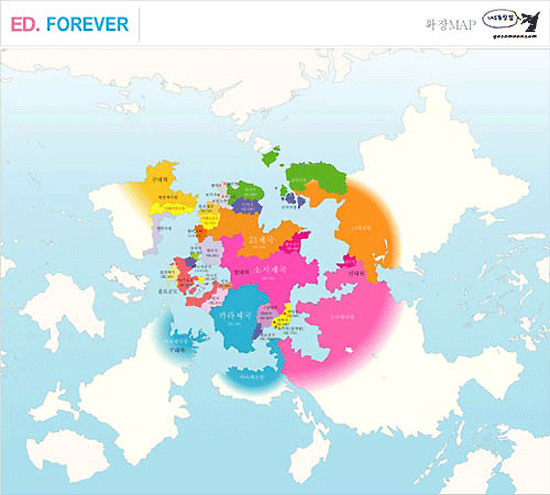 그가 새로 공개한 '걸그룹지도: 포에버-확장맵'은 카라제국이 그래도 있는 상태로 아직 영역이 표기되지 않는 흰색 지역이 추가로 표시됐다.