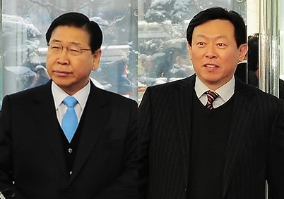 ▲ 대한통운 인수전으로 M&A 2라운드를 펼치게 될 정준양 포스코 회장(左)과 신동빈 롯데그룹 부회장(右)