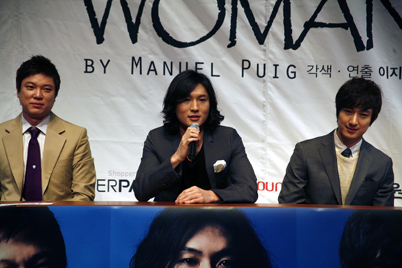 24일 오후 2시 대학로 SM아트홀에서 연극 시리즈 ‘무대가 좋다’의 일곱 번째 연극 ‘거미여인의 키스’의 제작발표회가 연출 이지나, 배우 정성화, 최재웅, 박은태, 김승대가 참석한 가운데 진행됐다.