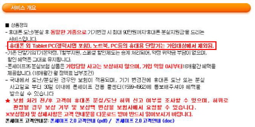 이에 대해 SKT 관계자는 "갤럭시탭의 경우 허위로 분실신고를 하고 PC처럼 사용하거나 심지어 재판매를 하는 등 악용의 소지가 있어 휴대폰보험을 허용하지 않고 있다"며 "앞으로도 갤럭시탭의 휴대폰보험 가입 여부에 대한 변화는 없을 것"이라고 설명했다.