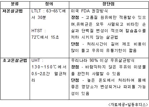 우유 패키지에 표기된 살균방법은 법적 표기사항이므로 저온살균으로 표기된 제품을 선택하면 된다. 또 저온살균 우유는 다른 살균법의 우유보다 유통기한이 짧다. 우유의 영양이 살아있어 균의 생장도 빠르기 때문이다.
