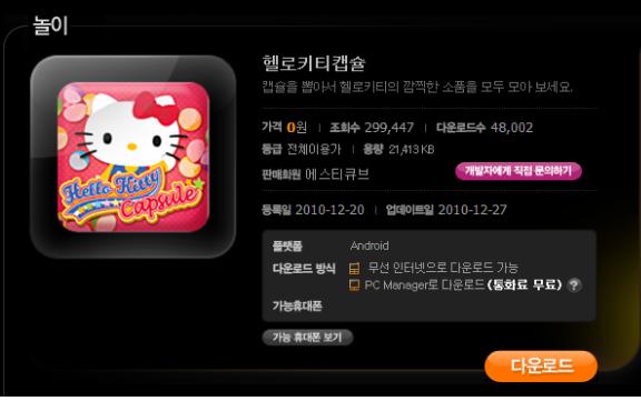 28일 충남 부여에 사는 김 모(남.36세)씨에 따르면 그는 지난 1월 14일 T스토어(티스토어)에서 '헬로키티 캡슐'이라는 무료게임을 다운받았다. 올해 일곱 살 된 딸이 가지고 놀 만한 것을 검색하던 중 찾은 이 게임은 헬로키티를 꾸미는 간단한 게임이었다.