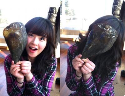 사진에서 이신애는 키조개에 얼굴을 전부 가려 진정한 ‘소두 종결자’ 임을 증명했다.