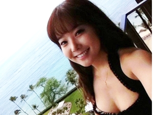 사진 속 그녀는 하와이 해변을 배경으로 숙소 난간에서 셀카를 찍는 모습이었다.