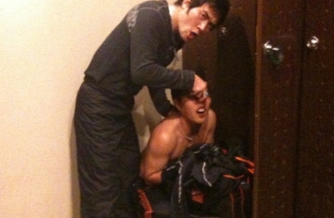 사진 속 김제동은 상의를 벗은 채 최민수에게 코를 잡아 당기며 익살스러운 표정을 짓고 있다. 그 사이로 보이는 그의 탄탄한 팔 근육이 눈길을 끈다.