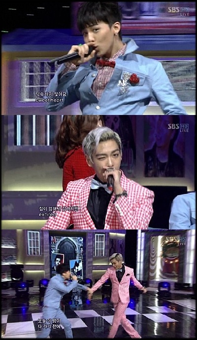 30일 생방송으로 진행된 SBS '인기가요'에서 지드래곤-탑의 '집에 가지마'가 첫 공개. 강렬하고 중독적인 음악과 함께 귀여운 퍼포먼스로 무대를 장악했다.