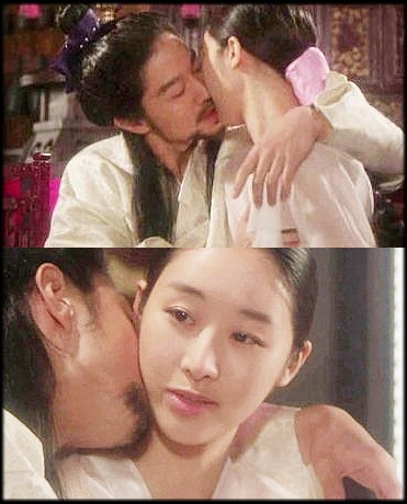 왕의 마음을 훔친 인빈은 왕을 은밀히 유혹해 마치 빨대를 문 것처럼 서로를 빨아들이는 듯 격정적으로 오랫동안 키스신을 선보였다. '빨대 키스'라는 애칭이 붙은 이유도 이 때문. (사진=OCN '야차' 방송 캡처)