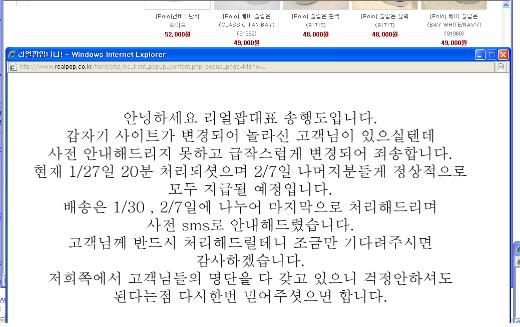 얼마 후 리얼팝 사이트에 접속한 윤 씨는 깜짝 놀랐다. 다른 쇼핑몰이 버젓이 운영 중이었기 때문. 그러나 황당하게도 로그인과 연락은 되지 않았다.
