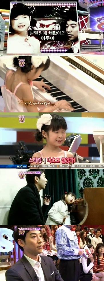 29일 방송된 SBS ‘놀라운 대회 스타킹’ 200회 특집에서는 지난해 발달장애에도 불구하고 3개월 만에 쇼팽의 즉흥환상곡을 마스터해 놀라움을 안겼던 박채란 양이 출연해 아름다운 피아노 선율을 선사했다.